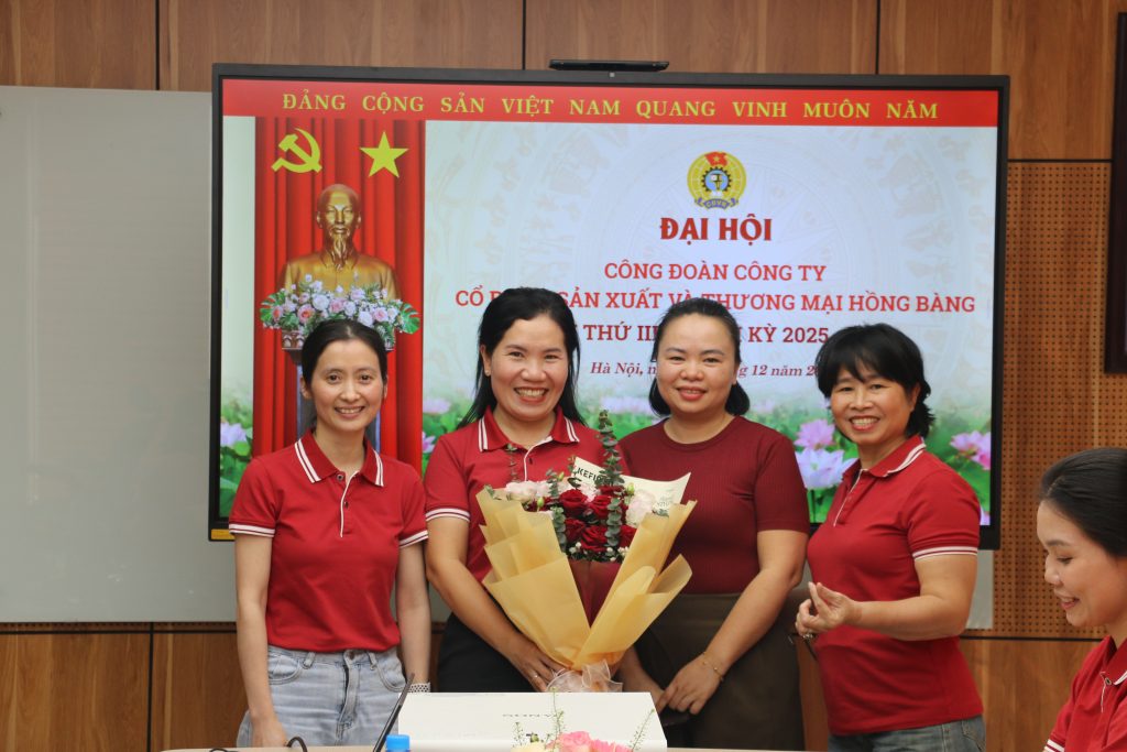 Tại Đại hội, các đại biểu đã tiến hành biểu quyết kiện toàn Ban Chấp hành Công đoàn Công ty Cổ phần Sản xuất và Thương mại Hồng Bàng khóa III, nhiệm kỳ 2025 – 2030 gồm ba đồng chí: đồng chí Trần Thị Nga (Phòng Truyền thông), đồng chí Phùng Thị Bích Oanh (Kế toán trưởng) và đồng chí Nguyễn Thị Ngân (Phòng Nghiên cứu Phát triển). Kết quả biểu quyết thể hiện sự tín nhiệm và kỳ vọng của tập thể công đoàn viên đối với Ban Chấp hành trong nhiệm kỳ mới.
